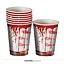 met deze witte bekertjes met een bloederige handafdruk.