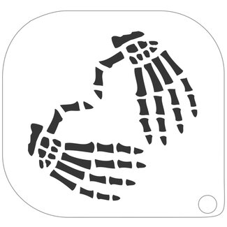 Plastic grimeer sjabloon voor het aanbrengen van skeletten handen op de huid.