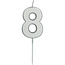 Cijferkaarsje 8 met mooie metallic zilveren glans.