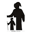 Compleet met zwarte mantel en puntige capuchon, inclusief zwart gazen masker.