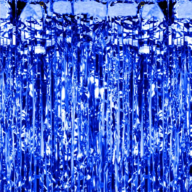 met onze Blauwe metallic folie slierten gordijn.