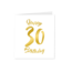 De kaart heeft een elegante gouden sierletter opdruk en de tekst "Cheers to 30 years".