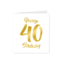 De kaart heeft een elegante gouden sierletter opdruk en de tekst "Cheers to 40 years".
