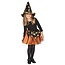 Incl. oranje tutu met zwart/gouden griezelige afwerking en heksenhoed.