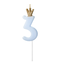 Super schattig zacht blauwe cijfer kaars met glitter goud kroontje