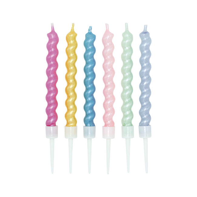 Dankzij de subtiele parelglans en de sierlijke spiraalvorm zijn deze kaarsjes een stijlvolle toevoeging aan iedere taart of cupcake.