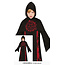 lang zwart gewaad met rode pentagram afbeelding en zwarte capuchon.