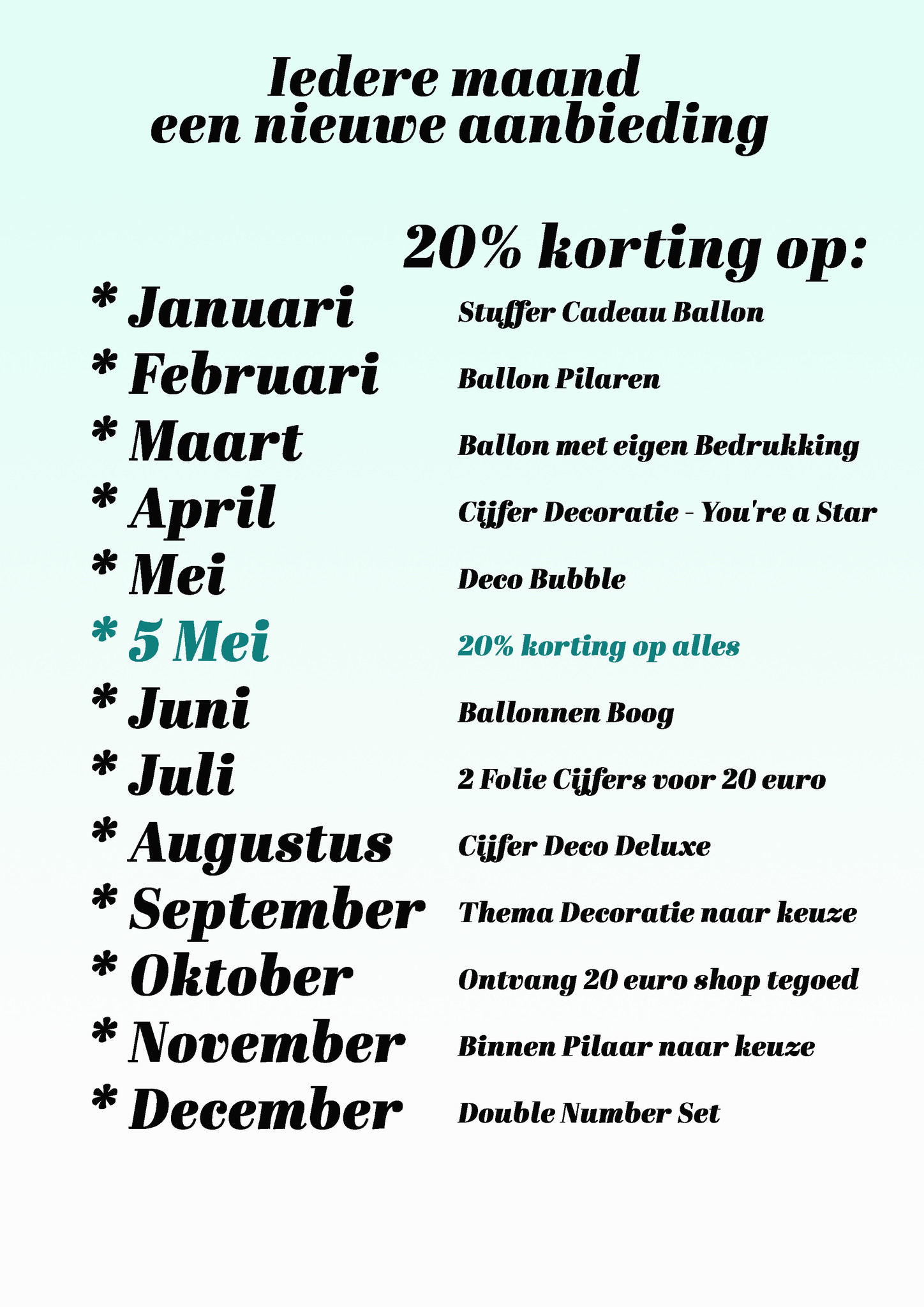 Zo hebben we iedere maand een nieuwe aanbieding.
