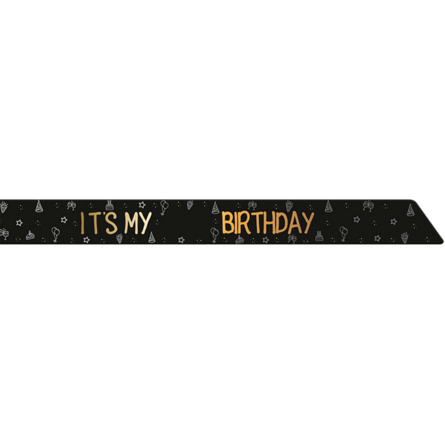 Laat iedereen zien wie er jarig is met deze opvallende Shining Glam sjerp met de tekst “IT’S MY BIRTHDAY” in glanzend goudfolie.