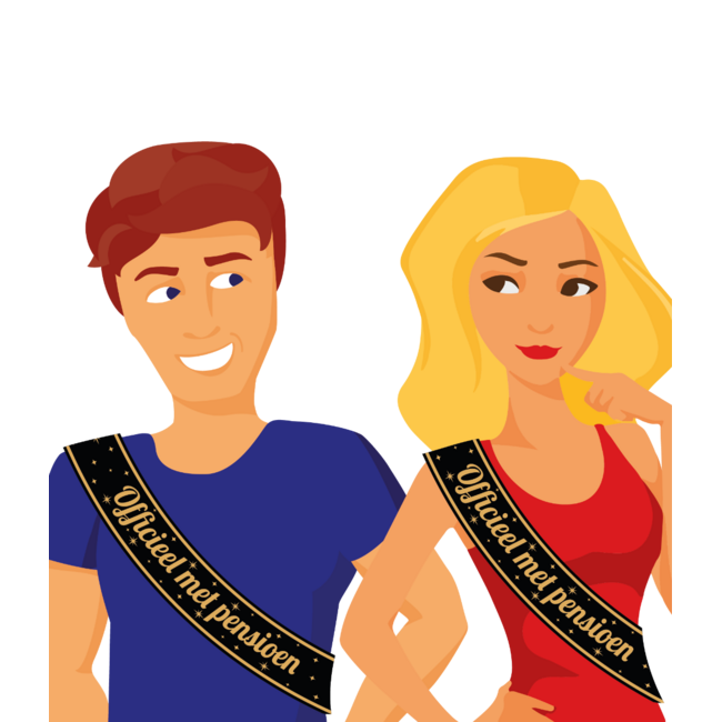 Met deze feestelijke sjerp met de tekst “Officieel met Pensioen” zet je de pensionado direct in het zonnetje.