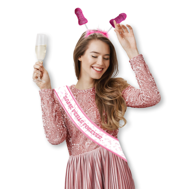 Deze hilarische sjerp met de tekst “Same Penis Forever” is dé perfecte accessoire voor een ondeugend en humoristisch vrijgezellenfeest.
