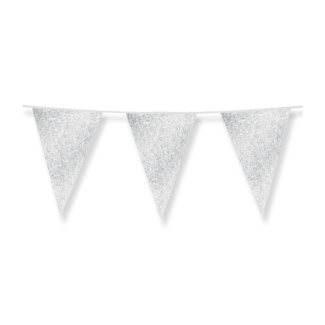 Papieren slinger met aan beide kanten zilveren glitters.