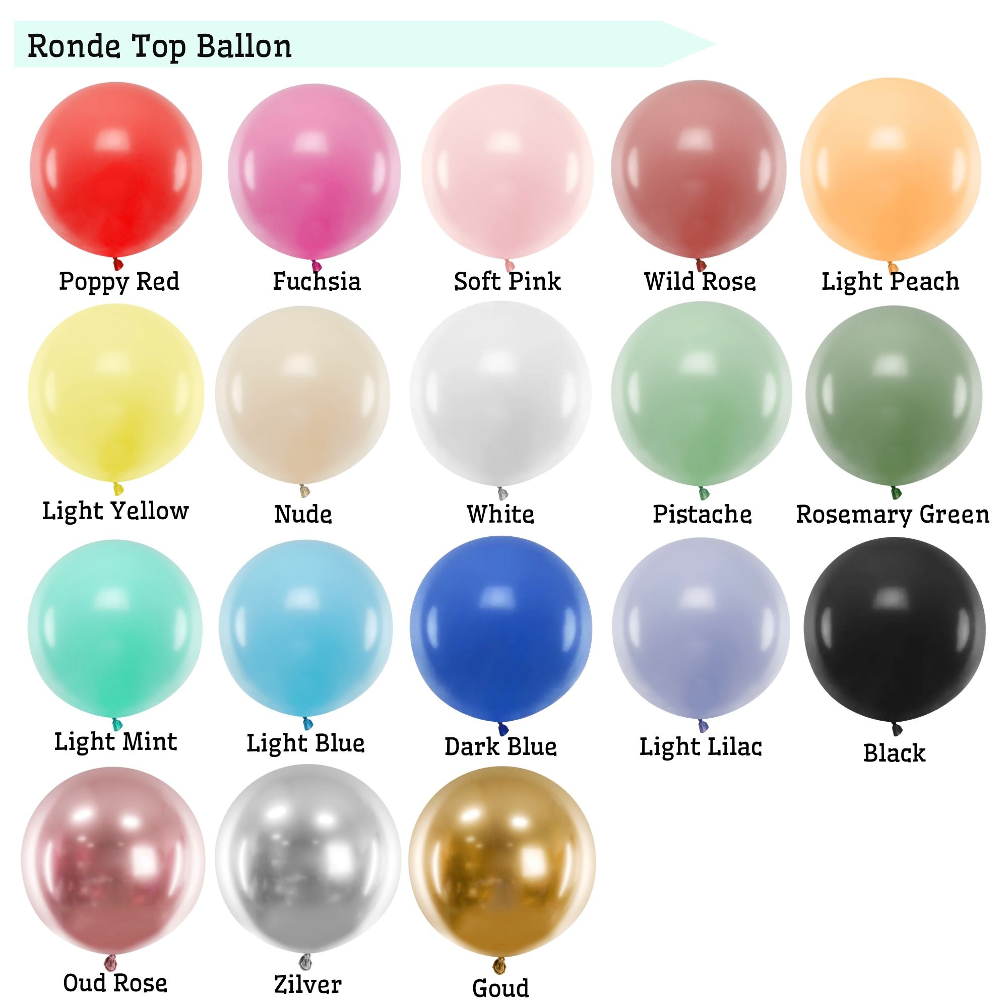 De topballon is verkrijgbaar in diverse matte en mooie chrome kleuren.