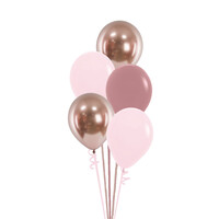 staander van 5 helium gevulde ballonnen in matte zachte roze tinten.