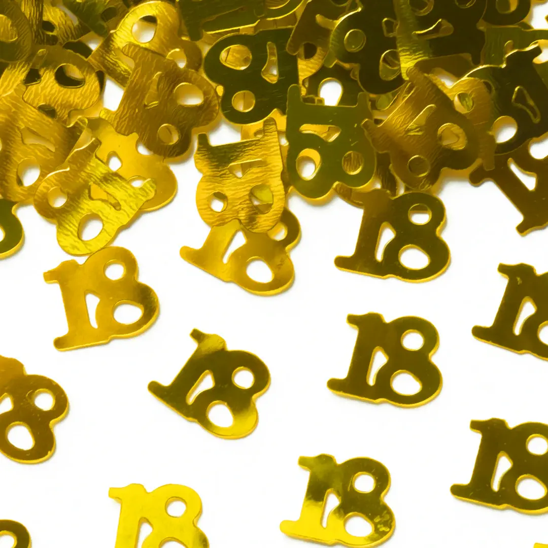 Vier je 18e verjaardag in stijl met deze gouden tafelconfetti in de vorm van "18".