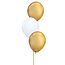 Ballondecoratie van 3 heliumballonnen in de Chique goud wit kleuren aan een gewichtje.