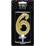 Taart kaarsje 6 met gouden glitters