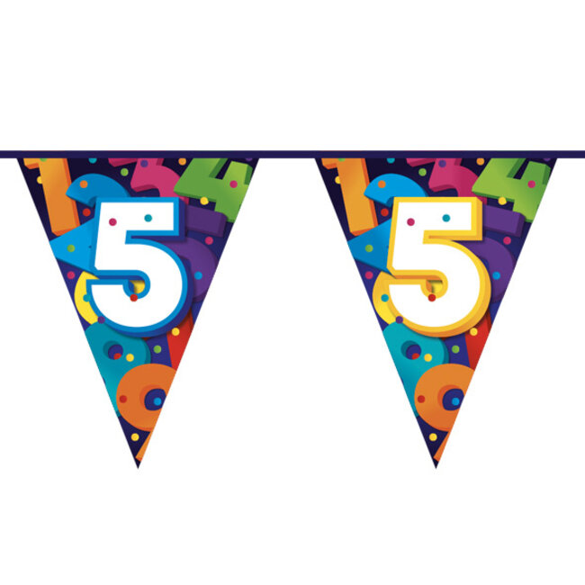 Plastic vlaggenlijn in vrolijke kleuren met 5 Jaar print