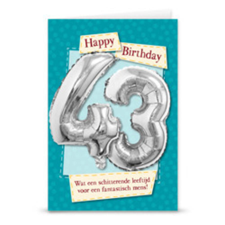 Wenskaart met Folie cijfer - 43 jaar
